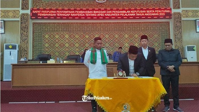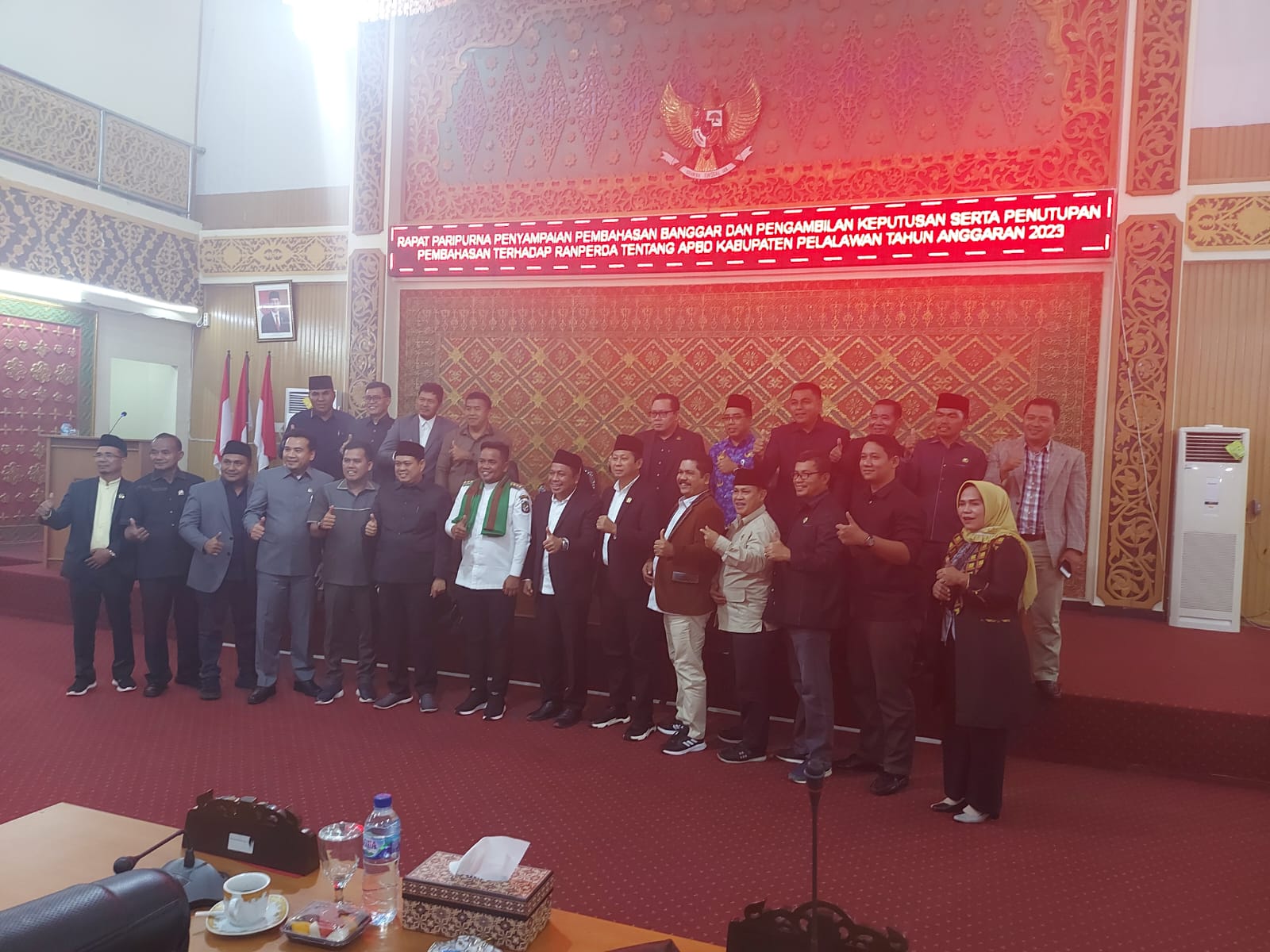 MediaKepriNews.Com- Alhamdulillah,,,,,Dewan Perwakilan Rakyat Daerah (DPRD) Kabupaten Pelalawan mensahkan Peraturan Daerah (Perda) tentang Anggaran Pendapatan dan Belanja Daerah (APBD) Kabupaten Pelalawan tahun 2023 pada Selasa (29/11/2022) sore lalu.