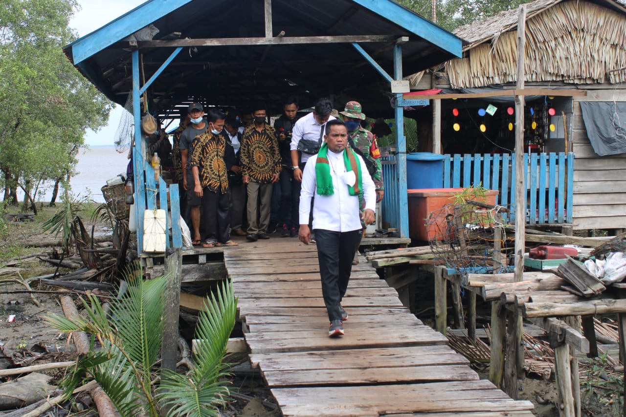 Dalam kunjungan kerja di Desa Sungai Emas, Bupati H Zukri melihat jalan lintas bono, dermaga, SDN 013 Sungai Emas, jalan lingkungan desa dan pasar Desa Sungai Emas.