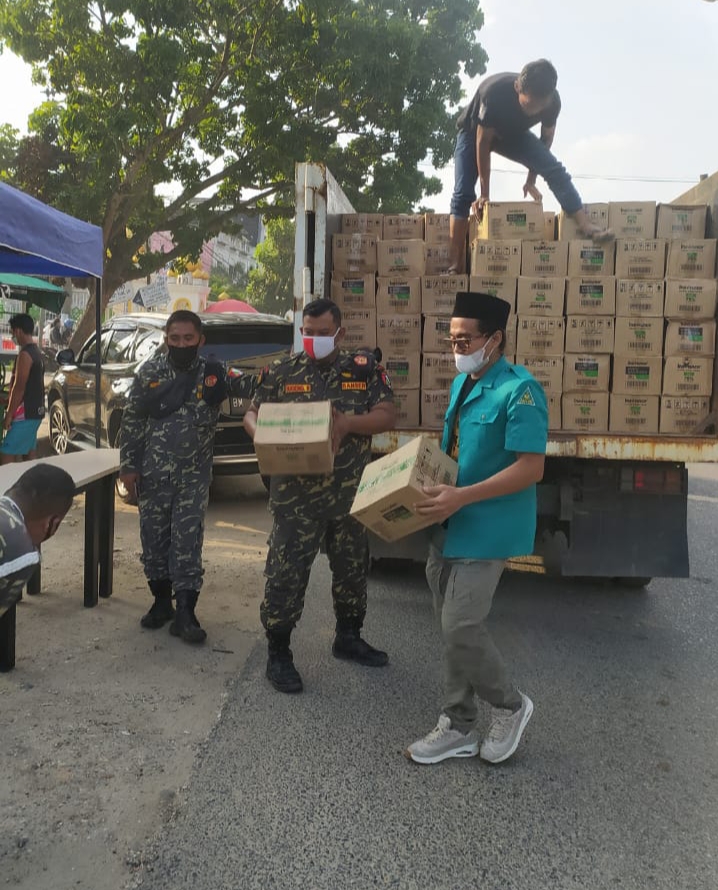 Sesuai pantauan media ini, 1 Truk Ansor yang berisi muatan penuh Hand Sanitizer berhenti di depan 2 tenda yang didirikan di tepi jalan. Muatan kemudian dibongkar oleh puluhan personil Banser yang sudah standby sebelumnya di lokasi. Ratusan karton Hand Sanitizer kemudian disusun oleh para relawan di atas meja-meja yang telah dipersiapkan untuk selanjutnya dibagikan kepada masyarakat yang melintas di Jl Maharaja Indra.
