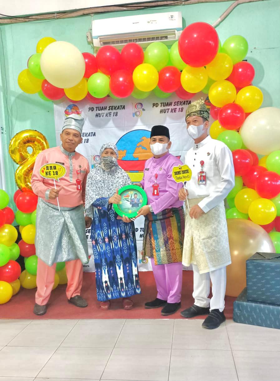 Pelalawan, MediaKepriNews.Com- Menyambut Hari Ulang Tahun (HUT) yang ke-18 Perusahaan Daerah (PD) Tuah Sekata, tepatnya hari Jumat tanggal 6 Agustus 2021. PD Tuah Sekata mengadakan beberapa rangkaian kegiatan yang sifatnya menyapa langsung kemasyarakat diantaranya Gerakan Mari Berbagi diantaranya pembagian Sembako, Souvenir dan doorprize kepada pelanggan setia PD Tuah Sekata dan kepada warga kurang mampu juga terdampak pandemi COVID-19. Rangkaian kegiatan perayaan yang dilaksanakan selama lima hari terhitung dari Senin tanggal 2 Agustus 2021 dan puncaknya Jumat tanggal 06 Agus 2021.