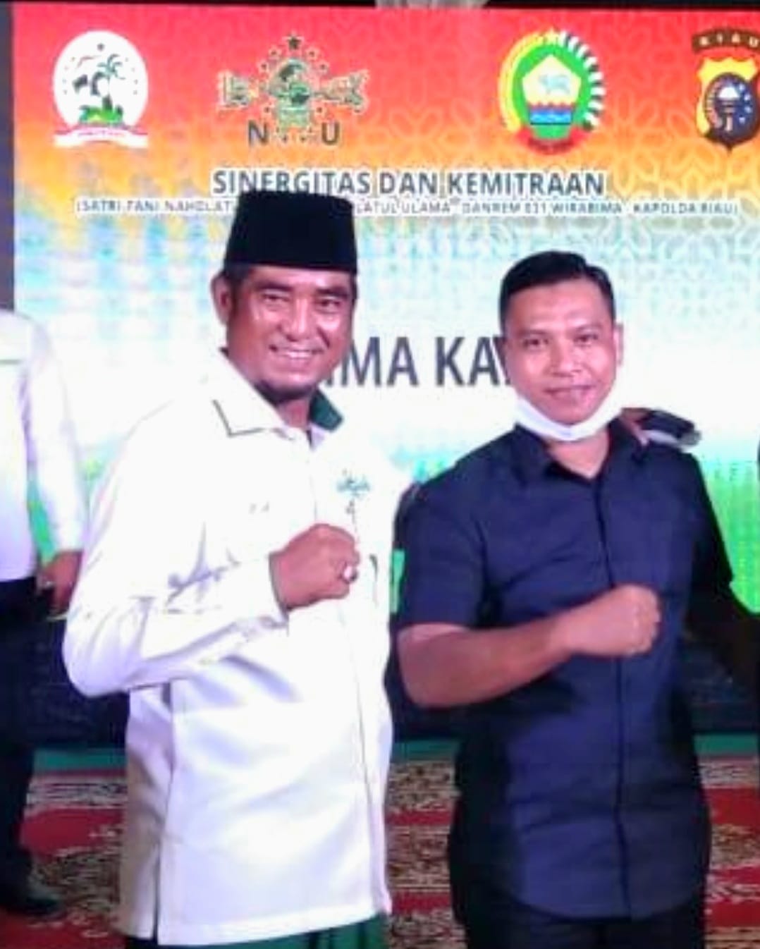 Ketua Umum DPP Forum FORMASI Indonesia Amir Aripin Harahap didampingi Ketua Umum Santri Tani NU, T.Rusli Ahmad di Pekanbaru, Jumat (18/02/2022) memberi penjelasan kepada media terkait petani berada dalam kawasan hutan.