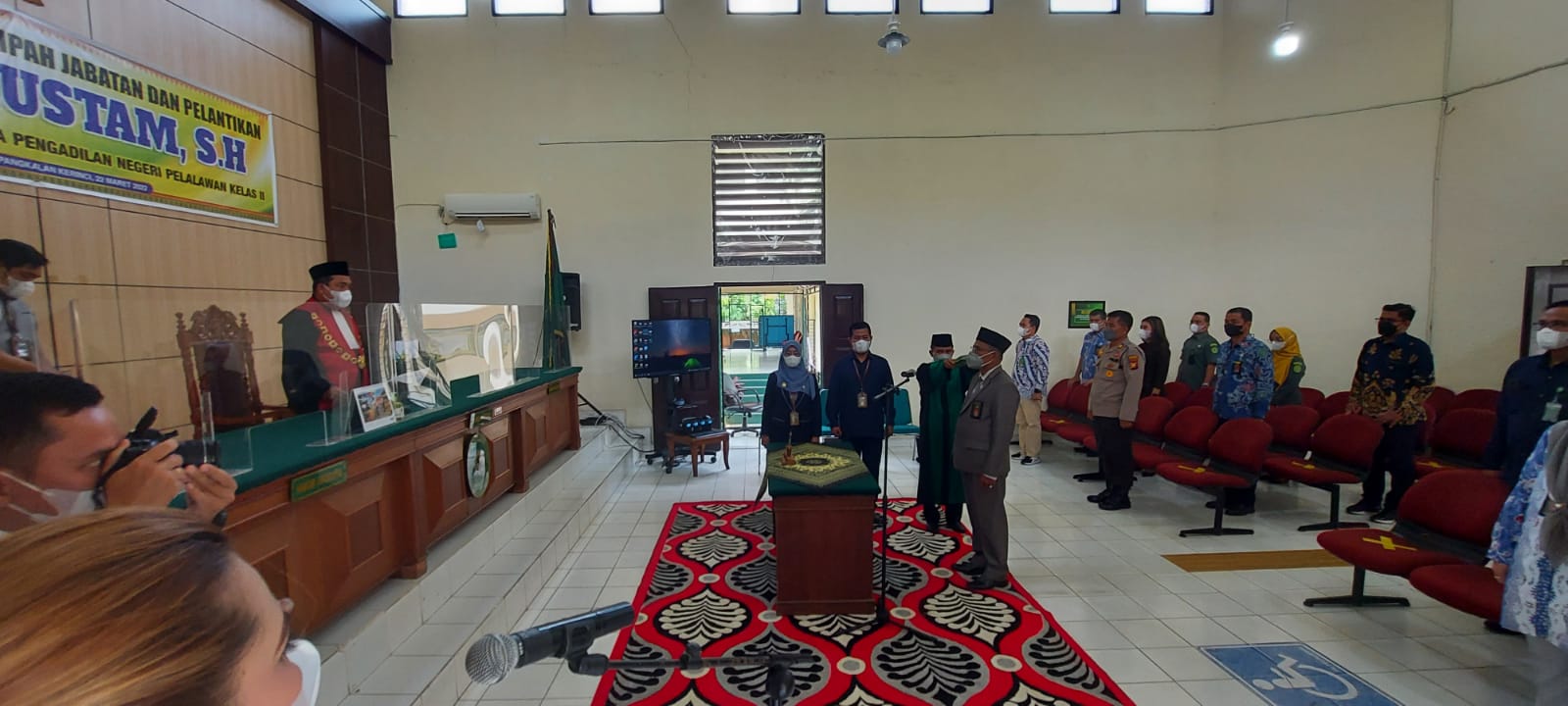 Pelantikan Rustam SH sesuai Keputusan Ketua Mahkamah Agung Republik Indonesia Muhammad Syarifuddin no 50/HMA/II/2022 mutasi dari Panitera Pengadilan Negeri Rengat, Provinsi Riau. Dihadiri staf dan jajaran Pengadilan Negeri Pelalawan, perwakilan Kejaksaan Negeri Pelalawan dan Polres Pelalawan. Serta disaksikan dari Kementrian Agama di Kabupaten Pelalawan.
