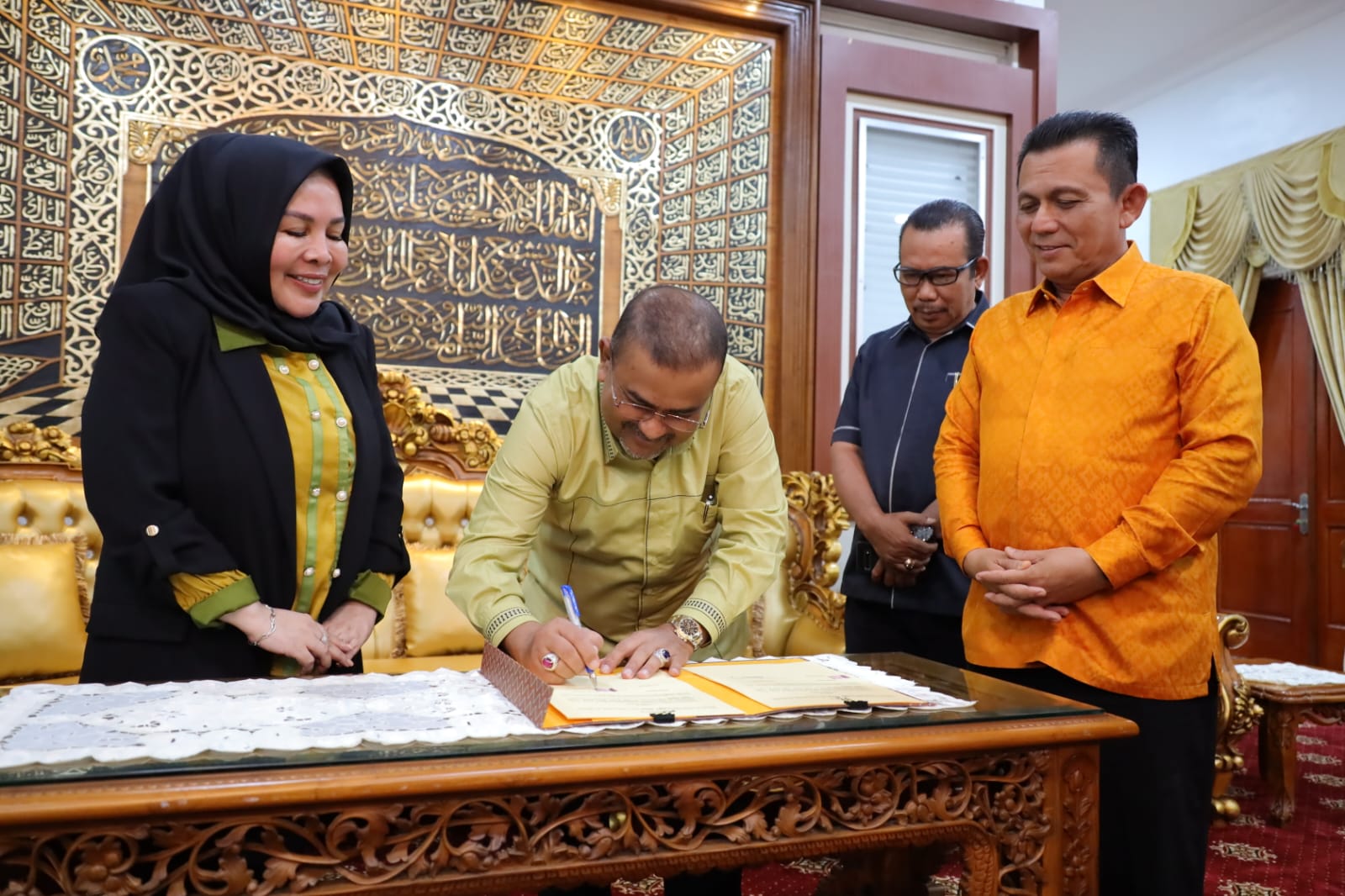 Penandatanganan MOU ini dilakukan oleh Bupati bersama kampus Uniba Batam di rumah dinas Bupati Karimun, Sabtu(29/10/2022) pagi.