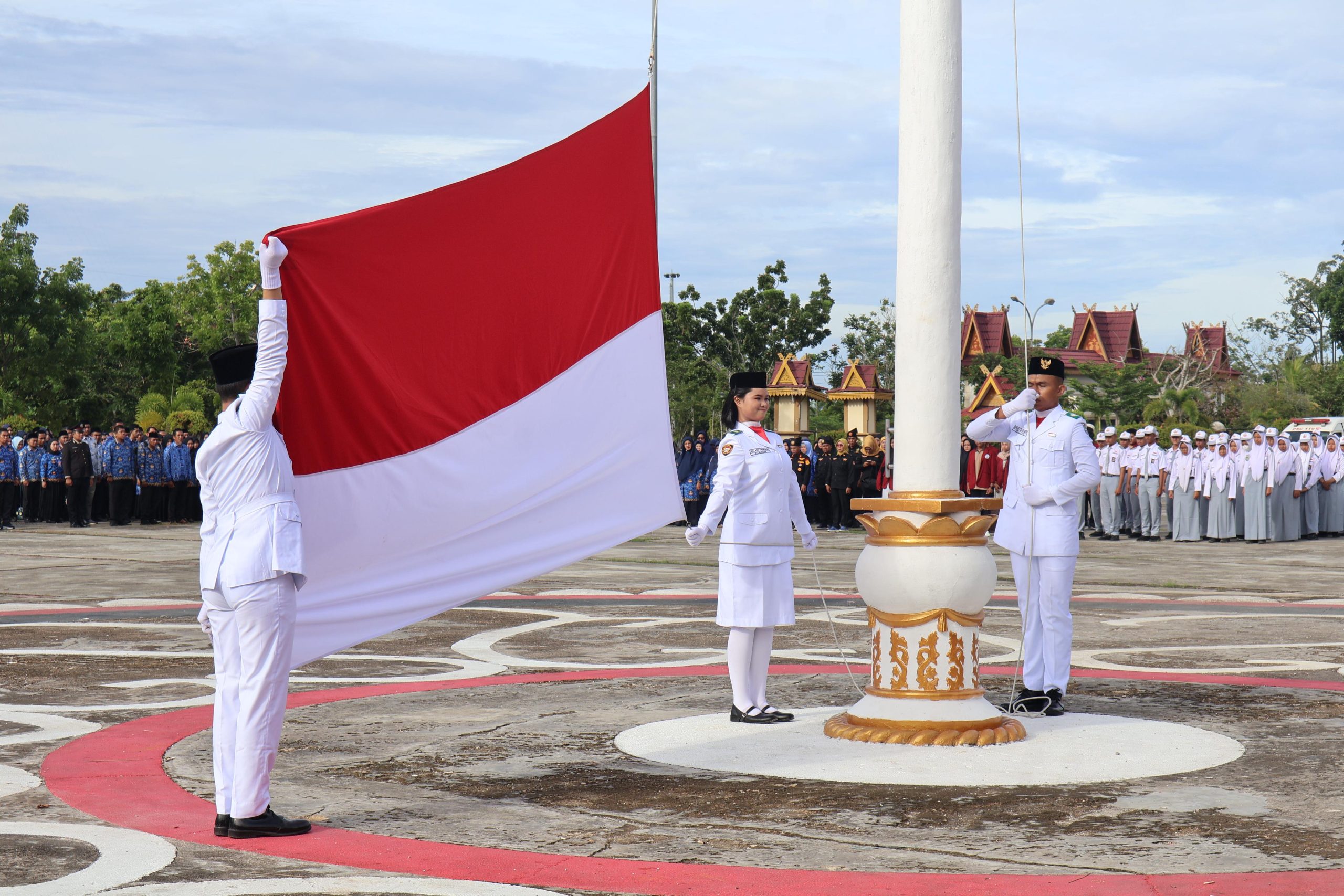 Rangkaian upacara dimulai dengan pengibaran bendera Merah Putih, dilanjutkan mengheningkan cipta sebagai bentuk penghormatan kepada para pahlawan yang gugur mempertahankan NKRI. Pembacaan teks Pancasila dan Pembukaan UUD 1945 turut meneguhkan kembali fondasi nilai-nilai kebangsaan.