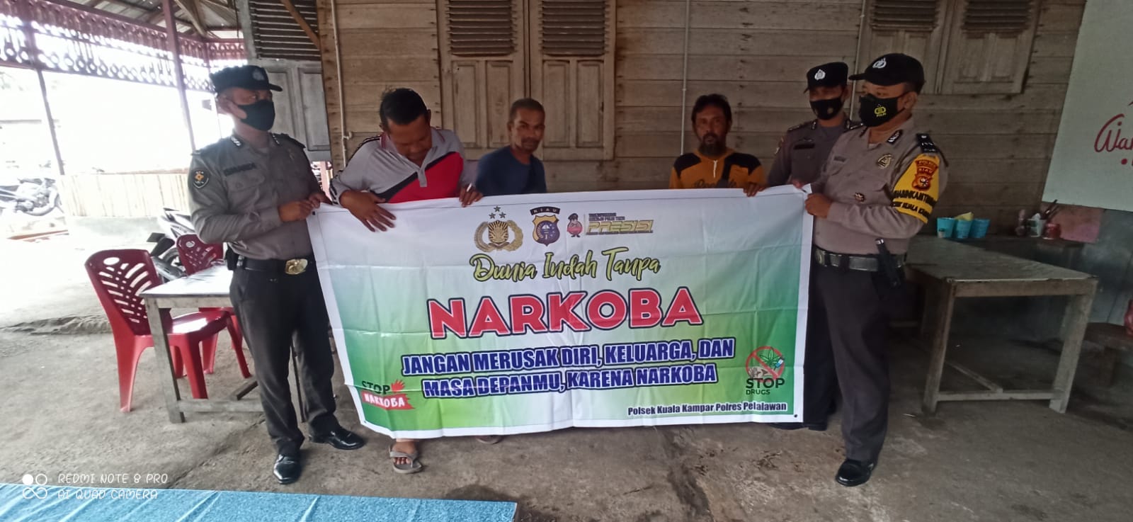 MediaKepriNews.Com-Personil Polsek Kuala Kampar, Resort Pelalawan Riau melakukan sosialisasi bahaya penyalahgunaan narkoba kepada warga di Kelurahan Kuala Kampar, Selasa (01/11/2022). Hal ini disampaikan AKP Hanova Siagian SH sebagai laporan kegiatan rutinnya pada Sabtu 29 Oktober 2022.