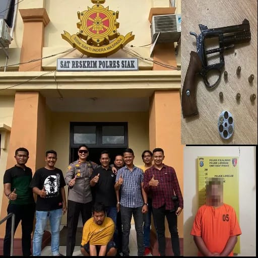 “Polsek Langgam bekerjasama dengan Reskrim Polres Siak melakukan penangkapan terhadap pelaku tindak pidana tak hak melawan hukum, membawa, menguasai senhata api beserta amunisinya dan atau penggelapan dalam jabatan atau penggelapan terhadap tersangka JG di Dayun Kabupaten Siak, pada Kamis 29 September 2022,” kata AKP Edy Haryanto SH.